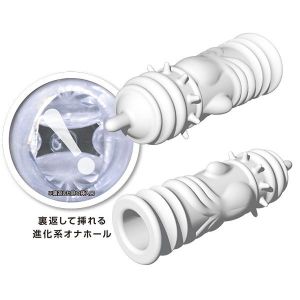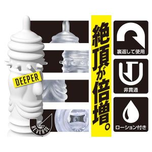 クリアボディにくっきりイボひげ!逆さに使えるリバースシリーズ登場だよ!中ヒダも凹凸で、い~っぱい発射できるよ!3つの刺激で快感アップ!!