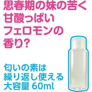 このパンティは、思春期の妹さんの甘酸っぱいフェロモンのほんとに本物の匂いを再現したんだって!さらに、匂いボトル60mlもついてて、いつでも妹ちゃんのいい匂いを楽しめるの!
