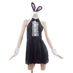 かわいいバニーさん見つけたよ!ハイネックでパフスリーブ、そしてAラインだよ。胸の谷間からお腹はシースルーで見えちゃう!おしりにはフサフサのしっぽもあるよ。カチューシャはナースキャップに耳が生えたデザイン♪