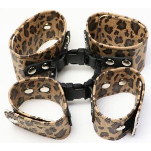 カチッと拘束 合体手かせ足かせセット(豹柄)〜接続できる拘束具〜最安値通販と紹介