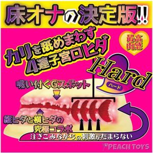 「こんにちは、わたしは床オナ式名器-種付けプレス- HARDの特徴をご紹介するよ!まずはじめにね、床オナ専用ホールっていうのが特徴的なんだ。お部屋の床に直接置いて使えるから、手ぶらでエッチな気分を味わうことができるんだよ!それからね、この名器はまるで本当のSEXみたいな気分にさせてくれるって噂なんだから、すごく興味深いよね!」