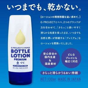G PROJECTとペペのコラボローション「G PROJECT×PEPEE BOTTLE LOTION PREMIUM」って知ってる?これはどんなプレイにもぴったりで、いつまでも乾かないプレミアムローションなんだよ。使い心地は中粘度で、滑らかで自然なうるおいが持続するんだ。しかも国内生産&国産素材で安心安全なんだって!感じのいいオトナのアイテムを使いたい子は要チェックだよ♪