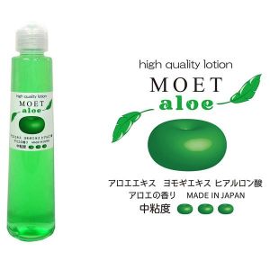 ふんわり香るアロエのローション♪中くらいのトロトロさで200ml入ってて、緑色よ!アロエとヨモギのエキスが入ってて、水に泡立たなくてもさっと流せるんだよ。クリトリスちゃんや無次元系オナホにぴったりだよ~♪MOETさんは化粧品作ってる工場で作ってるから、安心安全!薄っすら透けるボトルにワンタッチのキャップでオシャレだね♪