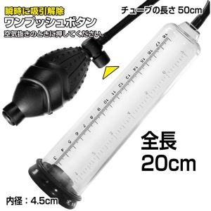 すごいポンプがあるよ!片手で操作できるし、シリコンとTPRスリーブが付いてる、プレミアムセットだよ。見た目もかっこいいし、吸引力は最高!UP/DOWNのボタンで3段階で調節できるよ。内側の圧力がリリースできるボタンがあるし、サイズアップも分かるように目盛もついてる。LEDもあるから明るいし、コントロールパーツも取り外し可能でメンテナンスしやすいよ。ローションを併用しようね!TPRスリーブはフィット感があって空気漏れも少なく吸引力がUPだし、シリコンスリーブは素材が100%シリコンで触り心地がサラサラだよ。長さ190mm、直径57mmだよ。電池とローション、商品保管袋も付いてるよ!