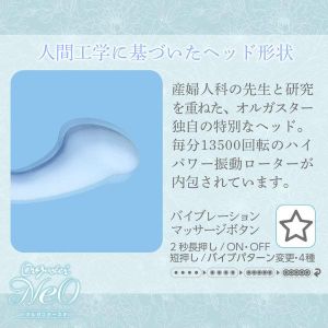 ハイパワーローターが毎分13,500回転してる、『オルガスター』の新作『オルガスターネオ ブルー』が登場したんだよ! マッサージボタンを押せば、振動が変わり、お気に入りの刺激を楽しめるの♪ しかも、最高級医療用シリコンで作られたから、スベスベしててしっとりとした感触も抜群だよ。