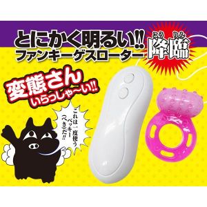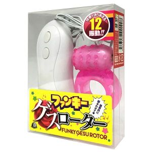 ねえ、ねえ、聞いて聞いて!すっごくファンキーなオモチャがあるんだよ!それが、「ファンキーゲスローター」っていうんだ!じゃあ、そのいいところを教えてあげるね。まず、パートナーと一緒につけたら、ね、ソフトなゴムのイボイボがクリトリスを刺激してくれるの。そしてね、振動の強さが12段階あるから、自分好みの強さに調節できちゃうんだよ!おススメは3番目と4番目だって!夜の浪漫飛行でもね、大丈夫だし、裸で使っても、パンツ着てっても、どっちでも良いんだ!これがあれば、絶対満足できるって!そして、日本の文化的なペニスリングローターだから、一度は使ってみるべきなんだよ!