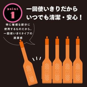 しかも、アンプルタイプなんだ!1回使いきりで、何回も使わなくていいんだ!全部で5本入ってるから、いつでも清潔安心に使える!先端部は極細のノズルが柔らかいから、直接アナルに使っても安心なの!