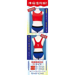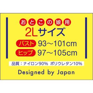 サイズは、2Lサイズです☆バストは93~101cm、ヒップは97~105cmの、女の子にぴったりなサイズ感です!素材は、ナイロン90%、ポリウレタン10%で、とってもフィット感がある素材なんです。