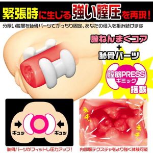 それから、膣筋PRESSギミックが搭載されているから、分厚い膣ねんまくコアをABS樹脂の恥骨パーツでガッチリ固定して、内部のデコボコをより強く感じられるようになってるんだってっ☆!