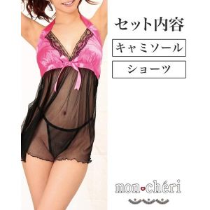 ねー、聞いて聞いて!これってすっごく可愛いの!ピンクと黒の組み合わせがめっちゃおしゃれだよ!セットでキャミソールとショーツが入ってて、モンシェリっていう女性向けブランドが作ったから、デザインも抜群!品質もしっかりしてるから、でもお値段はお手頃なんだって。彼氏とのデートに着たり、ちょっと自分をセクシーに演出したい時にもピッタリ!もちろん、プレゼントにしても喜ばれると思うよ♪