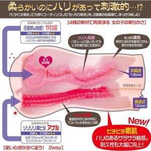 おおきなももの430g!びっしり肉厚で気持ちよさイッパイ!入り口はリアルにち○ひだがあって、途中から淫欲スクワッシュギミックがカプカプと甘噛みするのだよ!カ○も強く刺激されるから嬉しいね!最奥は狭くて気持ちいい場所だよ。すごい素材で、すんごい入れ心地!ギュギュと締め付けられてフィニッシュも気持ちいい!