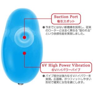 わたし大興奮!新しいローターがでたの!電池4ついるから、電動で振動するよ!ク●ト○スとか乳首に強力吸引するの!そしてブルブル震えて、ものすごく気持ちいい!6Vのパワフルなモーターで、すごい振動するんだよ!吸引の部分はやわらかいソフトな素材だよ!