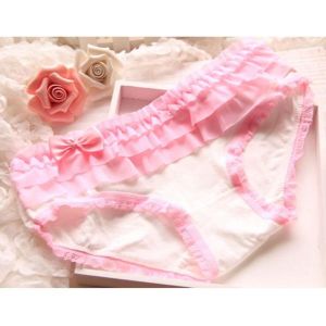 リボンつきのピンクのテディーが、柔らかい伸びるレースでできていて、履き心地も良いよ。フロントには、はしご状のデザインとリボンがついててかわいい。下着の上から着ても、ブラジャーとウエストにあるフリルでとっても可愛いかもね。ショーツもしっかりしたつくりだよ。