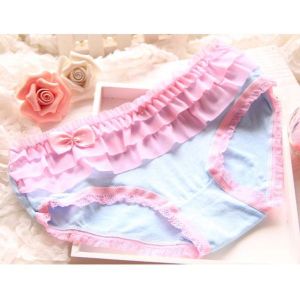 最後に、これまたカワイイウェストの部分!メッシュフリルが乙女心をくすぐる〜!アイボリーと水色の2枚セットなんだけど、どっちも可愛くて悩んじゃうな〜。こんなセットで彼氏にプレゼントしてもらったら、もう最高にハッピーになっちゃうよね!