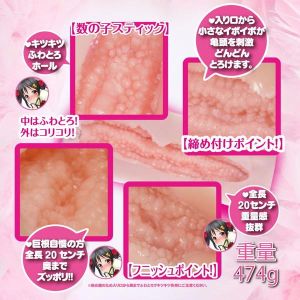 ねえ、お兄ちゃん!レイヤーちゃんって可愛いんだよね!その子に、うぶで柔らかい膣を姦通して欲しいなあ。外はザラザラで、中はフワフワの膣!イボイボだけど、数の子スティック4本がうごめいてるから、あなたのペ○スを気持ちよくしてくれるよ!途中のポイントで締め付けると、一気にフィニッシュ!重さは474g、長さ18cmで、ずっと気持ちいいピストンが続くんだ!でも、貫通しないから、大丈夫!日本で作られたんだよ!