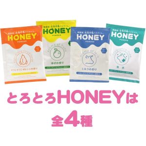 ふろがまるごとローションだったら良いな♪ 「honey」から10年経ち、パウダータイプ登場! お風呂にお湯を入れて混ぜるだけ。3~5分で完成!感じはクセになりそう♪ シャワーで簡単に洗い流し、後処理も楽ちん。無香タイプと香りつきの4種類あり。無香タイプはアロマオイルと混ぜてもOK!香りつきは爽やかな香りでお風呂にぴったり♪