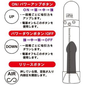まず、片手でカンタンに使える電動吸引ポンプなの!そして、通常のTPRスリーブを使うだけでなく、シリコンスリーブも付いてくるプレミアムセット!見た目もスタイリッシュで、吸引力もど派手に抜群!UP/DOWNボタンで調節できて、リリースボタンで空気を出すことができるから、いつでも調整OK!シリンダーにはサイズアップ目盛がついているから、簡単にサイズアップがわかるの。そして、LEDが付いているので、使うたびに中が照らされちゃうよ!コントロールパーツも外すことができるから、メンテナンスも簡単にできるの!