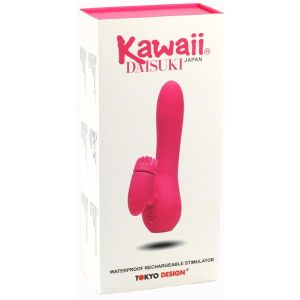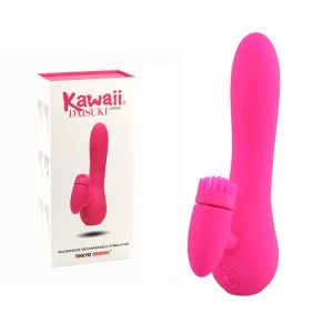 「わたし、U字バイブのこと知ってるよ!」10枚舌のバイブと大きめのバイブがついてるの。回転舌はKawaiiシリーズで有名だから、U字バイブにも付けたみたい。振動バイブと回転舌の両方が使える、スゴいやつなんだよ!強弱3パターンで、充電もできるんだって。水に強くて、簡単に洗えるから清潔に保管できるのもイイんだって。USBケーブルも付いてくるんだよ!