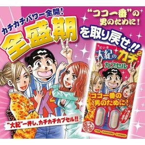 ねえねえ、聞いて!『大紀のカチカチカプセル 2粒』って知ってる?『夜の冒険漫画家』の山崎大紀さんがコラボした、エネルギッシュにサポートしてくれるアダルトグッズなの!ココ一番の時でもカチカチパワー全開で元気に過ごせちゃうんだよ!中高年の方には特におすすめ!栄養補助サプリメントで、いつまでも若々しくいたい人にピッタリなの。もっと強い効果が欲しいときは、カチカチドリンクと一緒に飲んじゃえば、サポート力アップ!内容量は2粒で手軽に飲めるよ!これであなたも、大紀ワールドにご招待♪