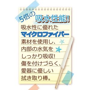 この「ながもち!メンテキット ホール専用メンテ用品3点セット!」には、3つのアイテムが入ってるんだよ。まずひとつめはメンテ棒!これは、とってもしなやかで細いの。だから、アダルトグッズの中の汚れやカスをキレイに拭き取ってくれるんだ。とっても使いやすいんだよ。