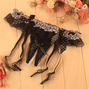 ショーツのお腹部分にガーターストラップがついているよ!ヴィジュアルがかわいくてセクシーで、実用的なアイテムなんだって。リボンはドット柄でレトロな感じがするの。パンツの下にはパールがついているんだって。可愛くてドキドキするアイテムなんだよ。