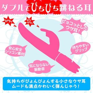 「Pyoco」というウサ耳のついたバイブがあるよ!初心者にも使いやすい3cmの先端と、長さ22cmのミドルサイズだからアソコも届くよ! 「プルプル」って振動で、ウサ耳クリバイブでプルプル責めに!静かだから、こっそり使えるし、10種類も選べるプログラムモードが楽しいよ。女の子でも使える「高品質シリコーン素材」と、水に強い「生活防水仕様」だからお手入れもカンタン!ただ、ジョークグッズなので、それ以外の使い方は責任取れないんだ。