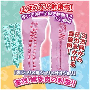 「うらジョリ」&「かめジョリ」×「さおジョリ」っていう、すごくびっくりする感じ!お肉のヒネリヒネリがすごーく気持ちいい!おちん○んに3方向から強く揉みデリバーするよ!そして、奥まで全部突っ込めるパーツもあるよ!心地よい存在感もあるから、思う存分突っ込んでほしいんだ!