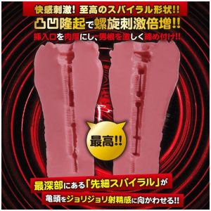 螺旋の形が立体的にできてるから、挿入した瞬間からズズンっと気持ちよさが広がるんだ。そしてなんと、さらに奥に先細スパイラルっていうのがあって、そこが亀頭をジョリジョリ刺激してくれるんだよ。これで射精感もものすごく強くなるんだ。