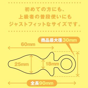 きゃー!ぷにっとしたコックの形のプラグが気持ちいいの!『はじめてのアナニー』っていうのがコンセプトで、PPPっていうのが作ったの。最大径31mm・最小径12mmで、高品質グレードシリコンを使ってるから安心だよ。負担がかからないようにソフトに、でもじんわりトロける刺激をくれるから、やみつきになっちゃう!あと、当社比で硬さ10%OFFになってるのもお得だね。