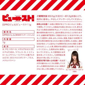 ねえねえ、みんな!性交の時、2分以内におしまいっていう女性が75%以上なんだって!でも、大丈夫!「お試し用[GPROジェル]ピュースト!1g 1回分×10個綴り」があるんだよ!このジェルは、アソコに塗るだけで、パートナーとのセックスをもっと楽しめるようにしてくれるんだ。マッサージもできるから、快感が倍増するってウワサ♪これを使って、パートナーともっとイチャイチャしてみよう!
