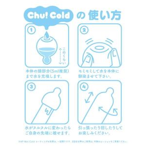 チュッ!コールドって、水をいれるだけでクールな感触が楽しめるアダルトグッズだよ!しかも、なんとローションが必要ないんだって!中にはメントール成分が入っていて、水を入れるとすぐにヒンヤリジュルジュルになっちゃうんだ。使いたいときは、水を入れてすぐに使えるよ!そして、チュッ!コールドの中はつぶつぶ突起形状で、気持ちいい刺激を与えてくれるんだ。だから、イクのが早くて気持ちいいってよく言われるんだよ!なんとチュッ!コールドは8個セットになっているから、満足度100%で使い続けられるよ!