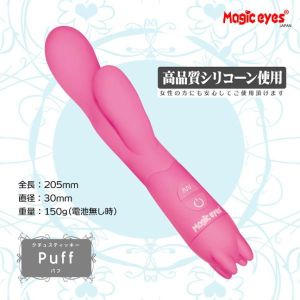かわいいピンク色の「Puff」、クチュスティッキーシリーズの新作が登場だよ!形がタマゴみたいに膨らんでて、細すぎず太すぎず、持ちやすいスティックバイブだよ!バイブレーションモードは10パターンもあって、初心者から上級者まで満足できるよ!ぶるぶる振動からリズム感のある振動まで、どれを選んでも気持ちいいよ!弾力があるから、先っぽまで気持ちよく刺激が伝わってキュンキュンしちゃうかも!自分の好きなスイーツポットが見つかっちゃうかもね!シリコーンゴム素材を使っているから、臭いも全然しなくて安心だし、静音性もばっちり!お風呂で使っても大丈夫だよ!メンテナンスも簡単だし、電池は単4電池2本で使えちゃうよ!新しいおもちゃと一緒に、楽しいバイブライフを送ろう!