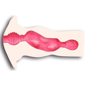 まず、この商品の特徴は、大きめのホールにグリップがついていることです。それによって、激しいスライドにも耐えられるんです!入口には、極狭な横ヒダがあるので、サオをキュッと締め付けてくれます。その先の内部、巫女さんが持つぽっこり大麻(おおぬさ)を模したぽこぽこがあって、いやらしく包み込んでくれるので、刺激的で気持ちいいんです!
