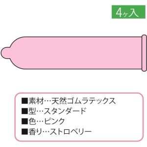 わーい!可愛いうさちゃんのコンドームがあるの!ジャバラタイプで出しやすいし、女の子にも人気みたいだよ。天然ゴムラテックスで4個入りで、ピンク色でいい匂いのストロベリー香りがするんだって♪