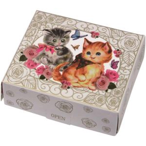 すっごくかわいい猫がデザインされてるコンドームがあるんだよ!女の人が絶対に喜ぶって♪ しかも、取り出しやすいポケットに入っていて、4つも入ってるんだ! でも、天然ゴムラテックスで出来てるから、ペットにはあげちゃダメだよ!ピンクでしわしわ模様で、いちごのにおいもするんだって!