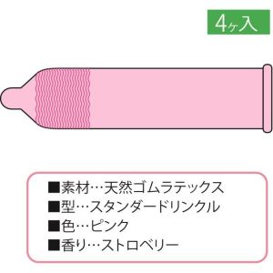 わーい!可愛いうさちゃんのコンドームがあるの!ジャバラタイプで出しやすいし、女の子にも人気みたいだよ。天然ゴムラテックスで4個入りで、ピンク色でいい匂いのストロベリー香りがするんだって♪