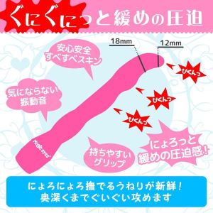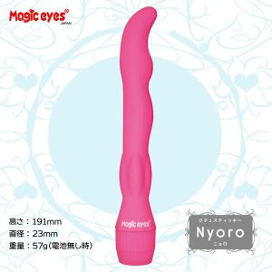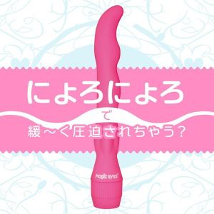 ほんまもんのニョロニョロがかわいい、マジックアイズの「クチュスティッキーNyoro〜ニョロ〜」。自分好みの強さに無段階で調節できるから、ビクビクしちゃいたいのも、もちろんOK!クリッと曲がったお尻が奥深くまで届いちゃうから、ドキドキ仕様です♪ 大事な場所も優しく守れるから、安心して使えます。水に少し濡れることも大丈夫やから、お風呂でも使えるという優れもの!単三電池2本も使うだけなので、手軽に使えるし、いつでも気軽に楽しめます♪ ただ、ジョークグッズとして使うことをオススメします。他の使い方に関しては、責任は持てませんので、ご了承くださいね♪