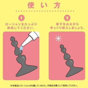 たのしい!3つのボールの刺激があるよ!先っぽのボールは15mmだから、アナニーすこーしわかった子にもやさしいね。でっかいボールは25mmだから、もうちょっとわかってきた子でも楽しめるの。ローションはついてないから、お店で買ってね。