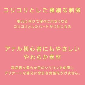 ねぇねぇ、デリケートな場所にも優しい柔らかいシリコンでできてるよ。ハート型がコリコリと徐々に大きくなるから、ハートに夢中になっちゃうかも!でも、ローションはついてないみたいだから、市販のやつを買ってね。あと、「訳あり」って外箱が傷とかでちょっと変わってるけど、品質はほとんど同じだよ!だから、お得だよ。でも、返品は受け付けられないからね、気をつけてね。