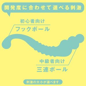 たのしい!3つのボールの刺激があるよ!先っぽのボールは15mmだから、アナニーすこーしわかった子にもやさしいね。でっかいボールは25mmだから、もうちょっとわかってきた子でも楽しめるの。ローションはついてないから、お店で買ってね。