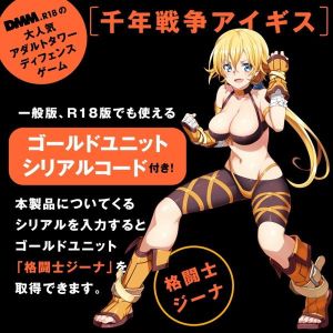 あと、DMMのオンラインゲーム「千年戦争アイギス」とのコラボ商品だから、シリアルコードを入れると、ゲーム内で使えるゴールドユニット「格闘士ジーナ」が手に入るんだって!それは嬉しいね!ゲームも楽しく遊べるし、快感ちつ肉トリニティで、いろいろな快感を味わえるよ!