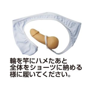 お兄さん!セクシーでワイルドなショーツ、新しいのがあったよー!色んな模様のやつや、普段使いにも使えるよー!男の人用だけど、ビニール素材で丈夫だから大丈夫!サイズはフリーサイズだよ!