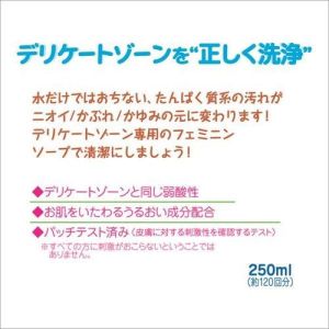 ねぇねぇ、みんな。フェミニンソープSF 250mlって知ってる?デリケートゾーンをやさしく洗えるんだって!Sweetなシャワーフレッシュの香りがするの♪ほかのソープじゃ落とせない、たんぱく質系の汚れもニオイやかぶれ、かゆみの原因にならないんだって!デリケートゾーンにぴったりの、弱酸性のソープで清潔にしよう!ほんとだよ!弱酸性なのに、肌のバリア機能を損なわないんだって!きめ細かい泡で汚れを取り去って、しっとりさわやかな肌にしてくれるんだ。パッチテストも済んでいるからね、安心して使えるよ!(でも、すべての人に刺激が起こらないとは限らないかもしれないから、注意してね)これで、デリケートゾーンも清潔に保つことができるよ♪