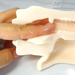 これ、ね、すごくやわらかいんだよ!お肌にも優しい植物性エキスとか酵母エキスとかが入ってるから、ローションを使ってオナホールや性感プレイするとき、ものすごく気持ちよくなるんだって!