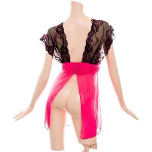 ねぇねぇ、この『ワイドレースベビードール』って知ってる? ファッションにも詳しいあなたにピッタリのアイテムよ♪深いVネックとフレンチスリーブで、お洒落度はバッチリ!セクシーと可愛さの両方が融合したピンクのメッシュも素敵でしょ。伸縮性もあるんで、着心地は抜群だわ。また、お尻が隠れる程度の丈感があるから、ちょっと大人っぽいけど、妙にセクシーな感じがして素敵♡