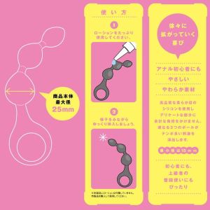 たのしい!3つのボールの刺激があるよ!先っぽのボールは15mmだから、アナニーすこーしわかった子にもやさしいね。でっかいボールは25mmだから、もうちょっとわかってきた子でも楽しめるの。ローションはついてないから、お店で買ってね。