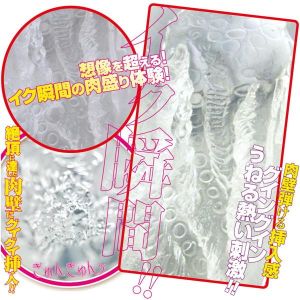 「で、もう一つ、イク瞬間までの射精感が、もっとたまらなくなっちゃうんだって!なぜか知ってる?それはさ、極上まん肉が吸ってくれるから!これが最高に気持ちいいんだって!あと、肉壁が絶頂に達すると、『グイグイ』って感じで挿入するとさらに最高なんだって!こんな肉盛り体験したことないよ!」