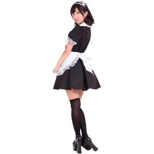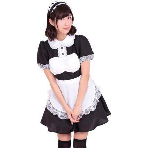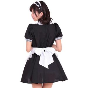 わたし、メイドカフェに行ったら、クラシカルデザインのお洋服のメイドさんたちがいたの!ウエストのボタンやカチューシャとエプロンのリボンが可愛くて、萌え要素いっぱいだったよ♪