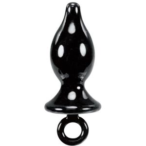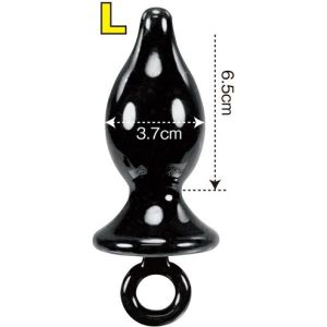 「ほらね、新しいおもちゃが出たよ!」快楽の黒肛門栓だって♪初めてでも大丈夫♪弾力素材で柔らかくて長い時間も楽しめちゃうよ!握りぐらいあるのに、おしりにもフィットするんだって!サイズはすごくちいさいから、誰でも使えるよ!全部で10.5cmで、先っちょは5.5cmだよ!前の方の最大幅は3cm、真ん中は1.7cmだよ♪ね、楽しそうでしょう?36グラムだよ☆