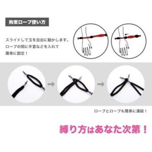 これであなたも調教士になれるよ!玉をスライドするだけで簡単に拘束できる新しいアイデアだよ。数本つなげて理想の縛りに近づけよう。これは結び目が必要ないので、初めての人でも使いやすいSMロープだよ。2本以上つなげることもできるので、いろいろな縛り方が楽しめるよ。初心者から上級者まで楽しめるロープだよ!